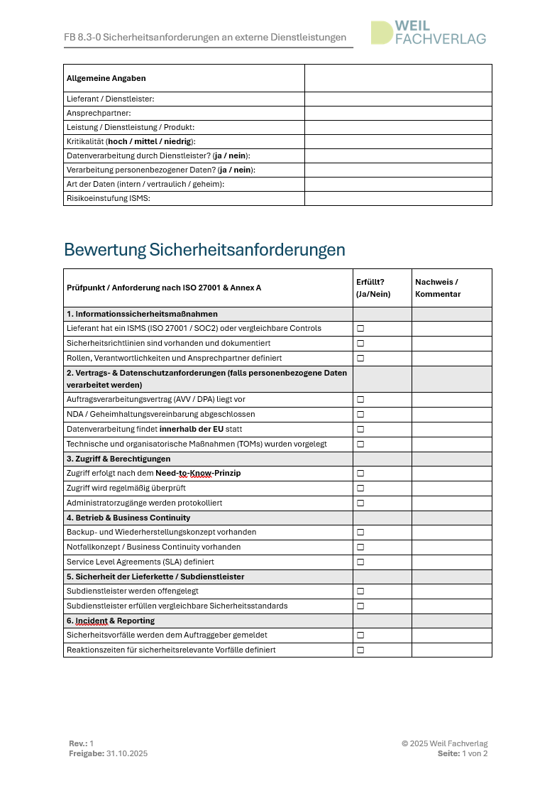 Das Toolkit deckt wirklich alles ab: Richtlinien, Prozesse, Checklisten, Nachweise, Risikoanalyse, SoA – alles da. Klare Empfehlung.