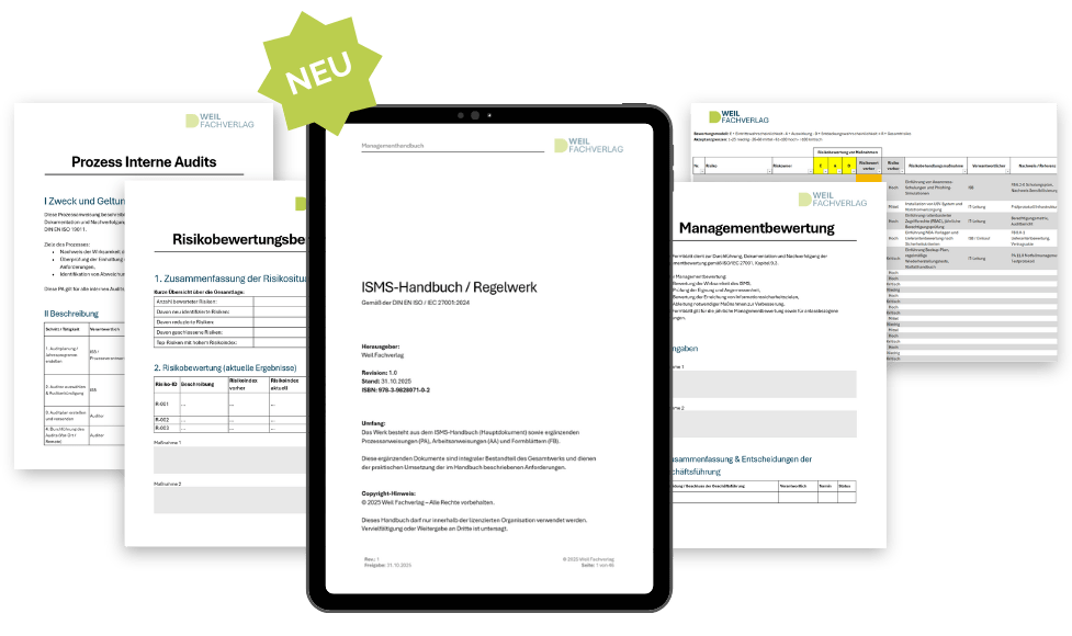 Wir setzen das ISMS-Toolkit zur Pflege unseres bestehenden ISMS ein. Viele Dokumente waren besser und praxistauglicher als unsere bisherigen. Große Zeitersparnis, klare Struktur, wirklich gutes Preis-Leistungs-Verhältnis.