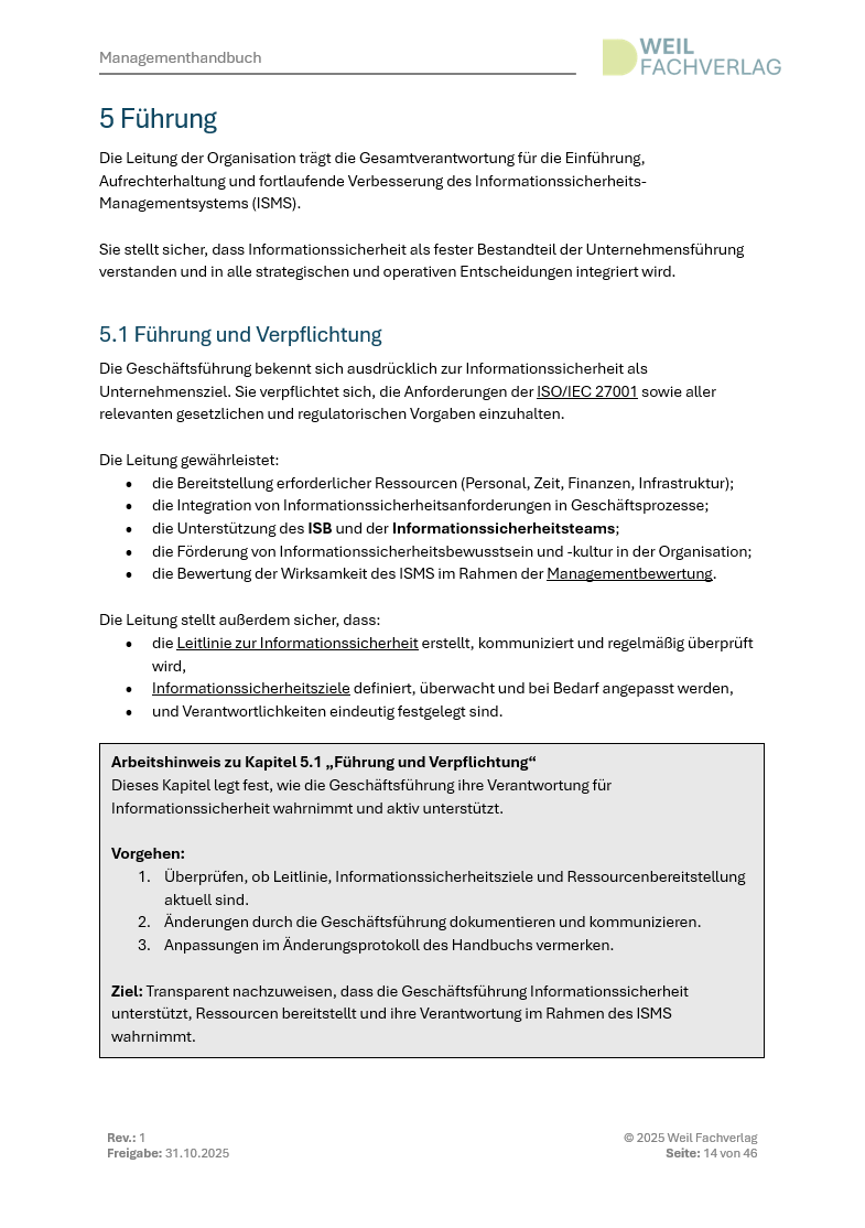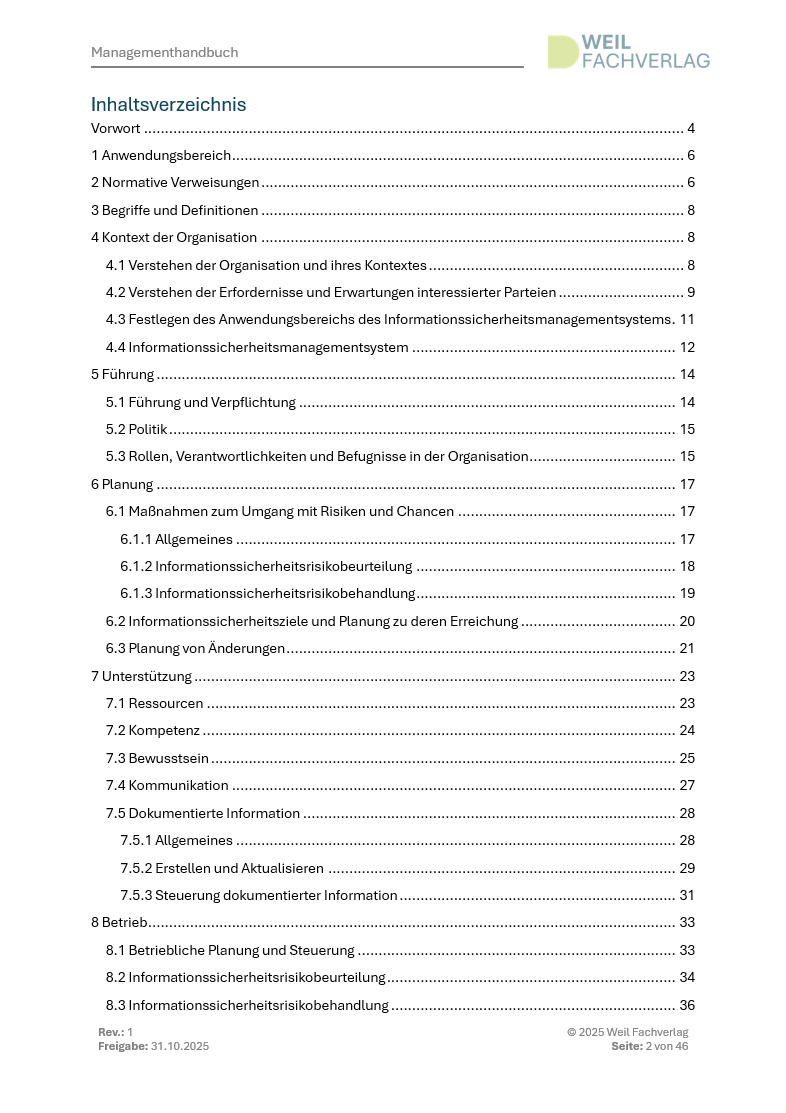 Ja. Alle Inhalte wurden nach ISO/IEC 27001:2024 strukturiert und entsprechen der High-Level-Structure.