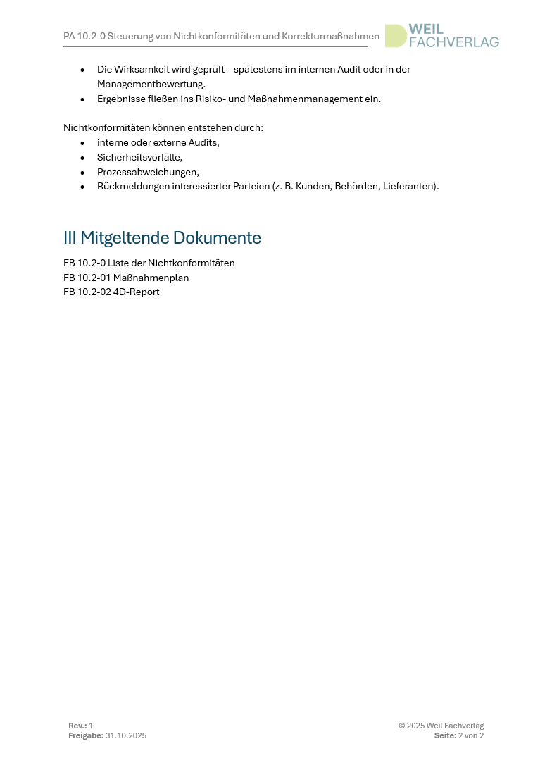 PA 10.2 Nichtkonformitäten & Korrekturmaßnahmen