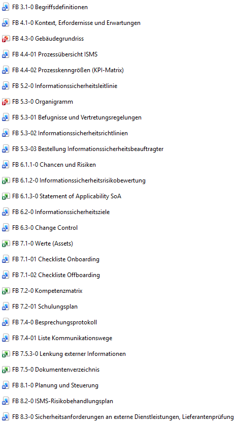 Damit Sie sofort einschätzen können, welchen Umfang und welche Qualität Sie mit dem ISMS-Toolkit erhalten, finden Sie hier einen direkten Einblick in ausgewählte Dokumente, Tools und Prozesse. Alle Vorlagen sind vollständig editierbar und sofort einsatzbereit.