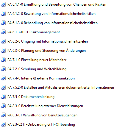 – Prozessanweisungen (alle relevanten ISO-Kapitel)